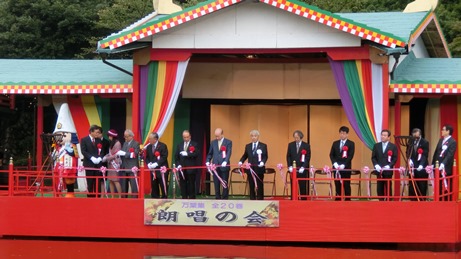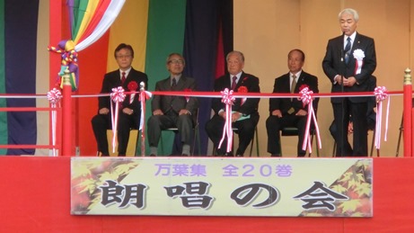 高岡の秋を彩る「高岡万葉まつり」が開幕し、万葉集全4516首を3昼夜かけて歌い上げる「万葉集全20巻朗唱の会」が高岡古城公園の特設水上舞台で始まりました。県内外の約2200人がリレー形式で万葉集を歌い継がれます。